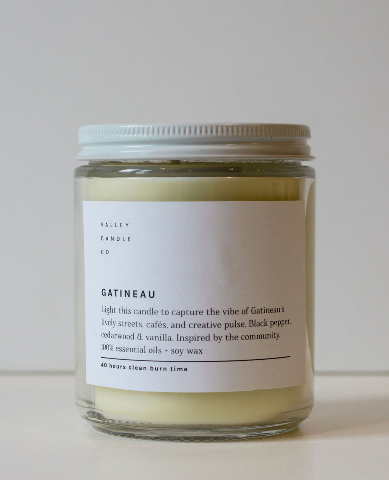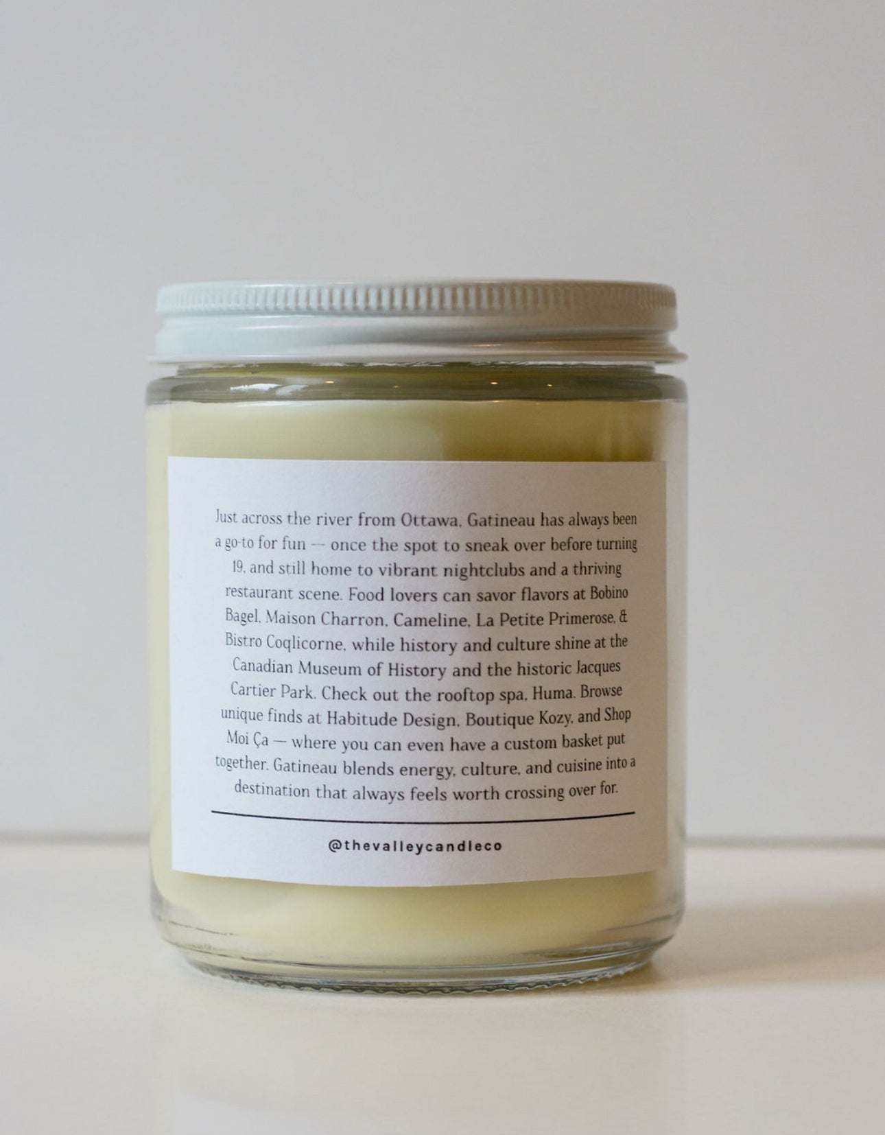 Light this candle to capture the vibe of Gatineau’s lively streets, cafés, and creative pulse. Black pepper, cedar wood & vanilla. Inspired by the community. 100% essential oils + soy wax